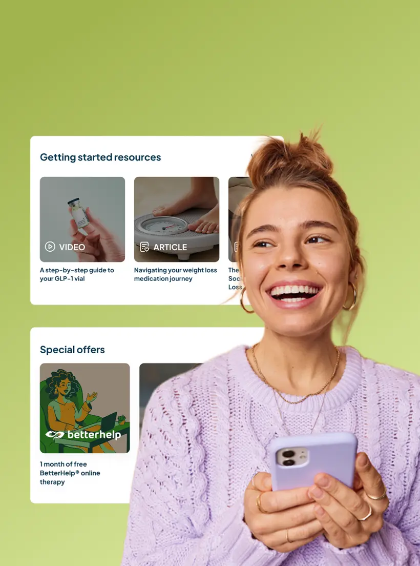 Your pricing covers everything you need to get started and stay supported, including your doctor’s visit, medication, syringes, and shipping. In addition, you will receive access to onboarding webinars, educational videos, and support resources, along with free and discounted partnership rewards to support your broader wellness journey.